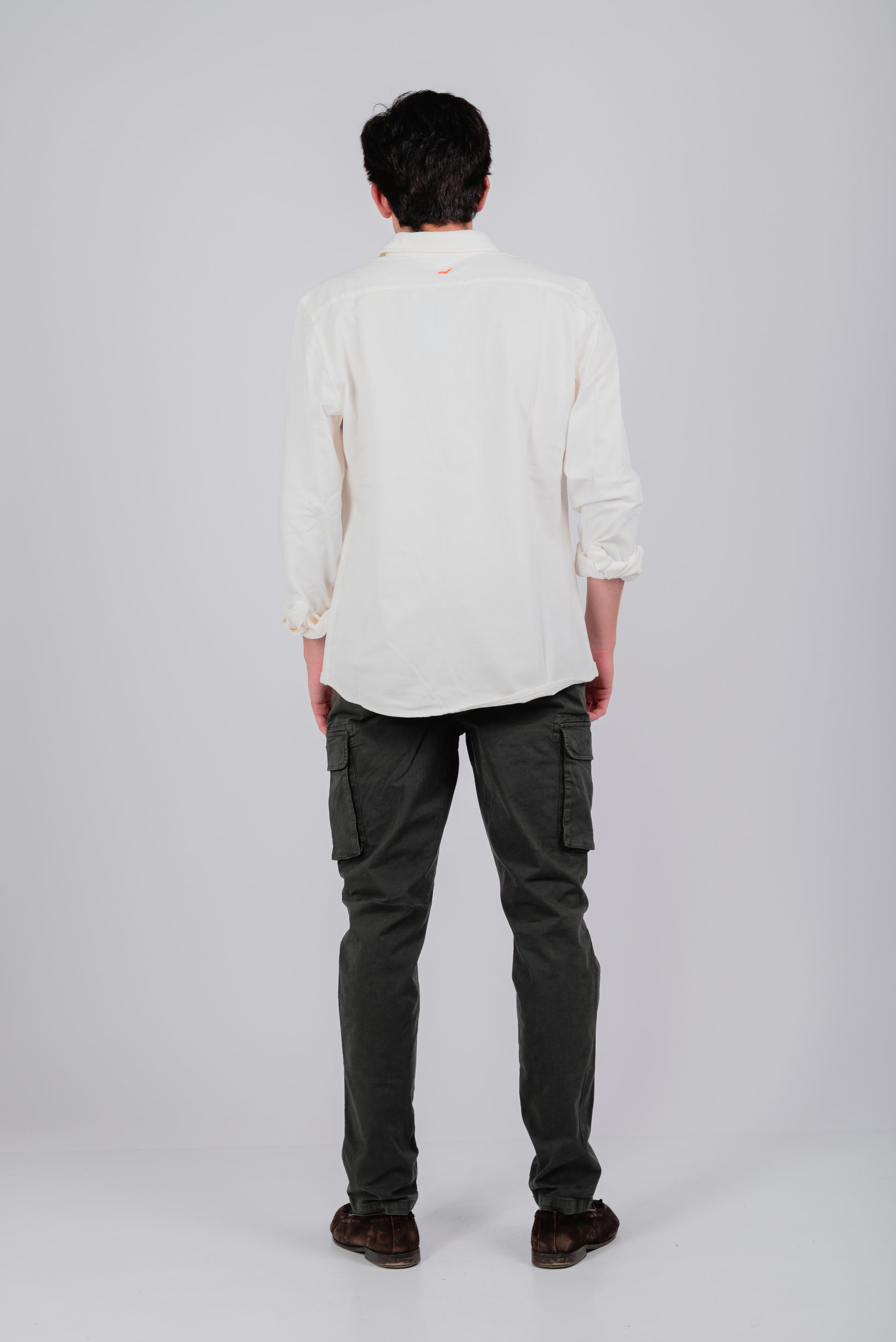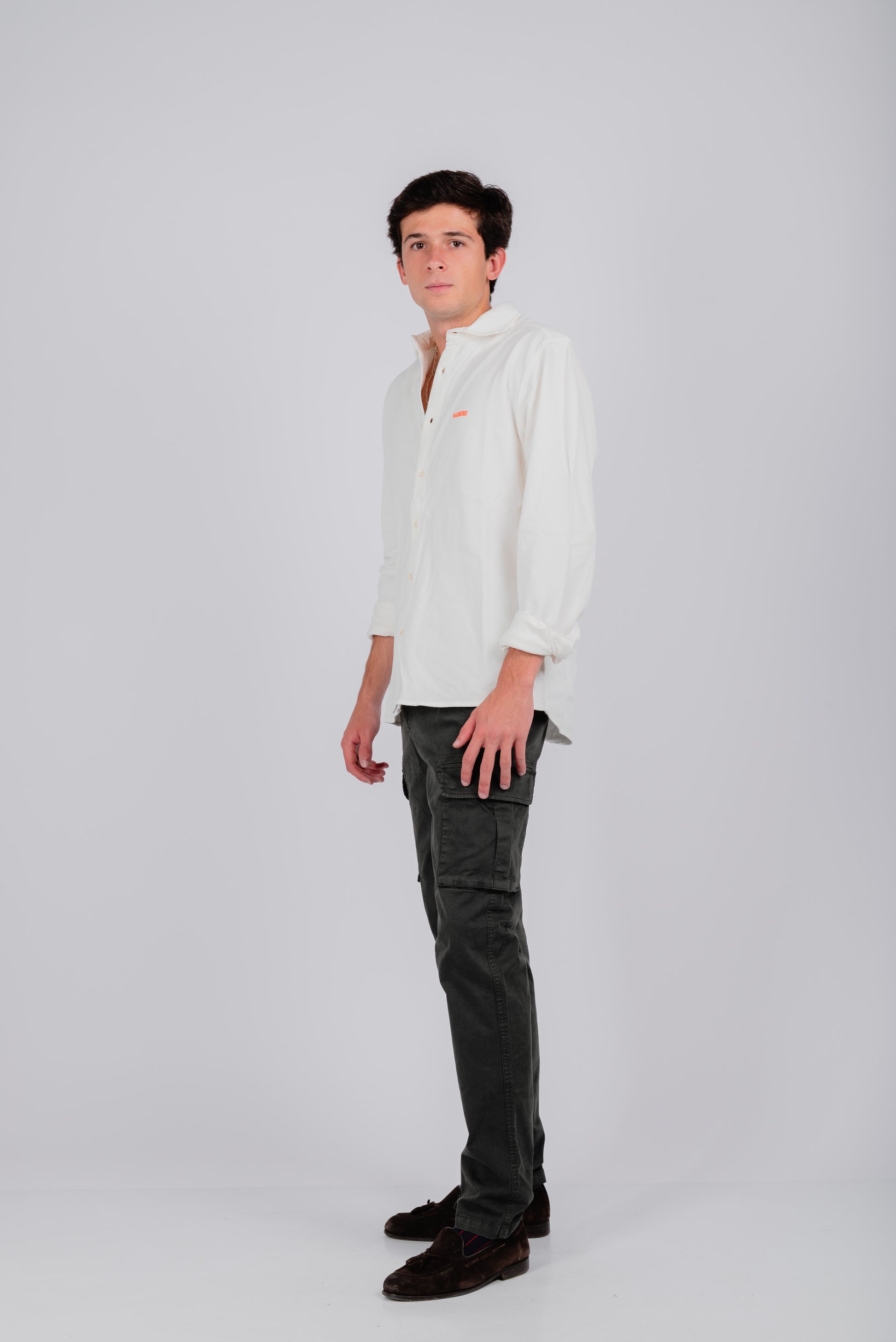 Camisa piqué marfil bordado naranja